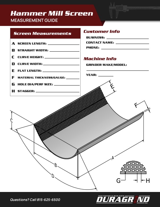 The Hammer Mill Screen Measurement Guide gives you step-by-step instructions for measuring hammer mill screens—covering hole size, shape, thickness, and curvature—to ensure an accurate fit and reliable performance.