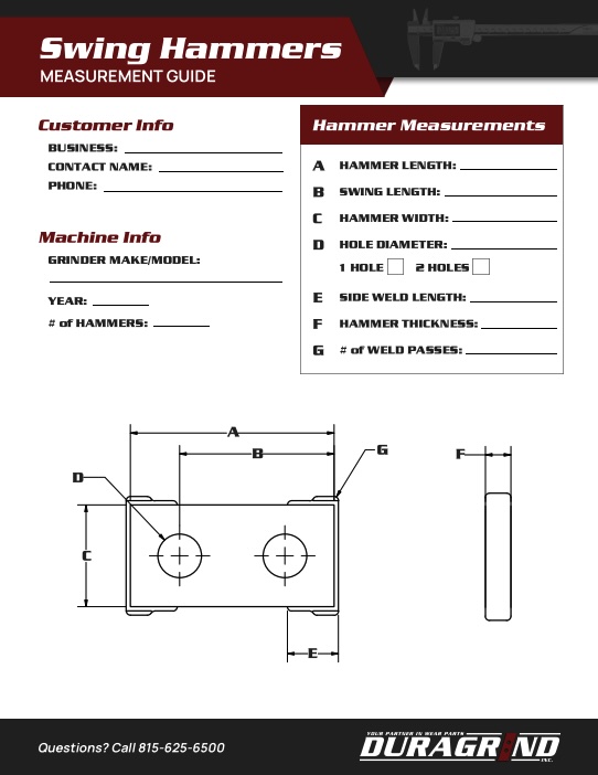 Our Swing Hammer Measurement Guide provides guidelines for measuring hammer length, swing length, hole diameter, and thickness—making it easy to order the right replacement hammers with confidence.